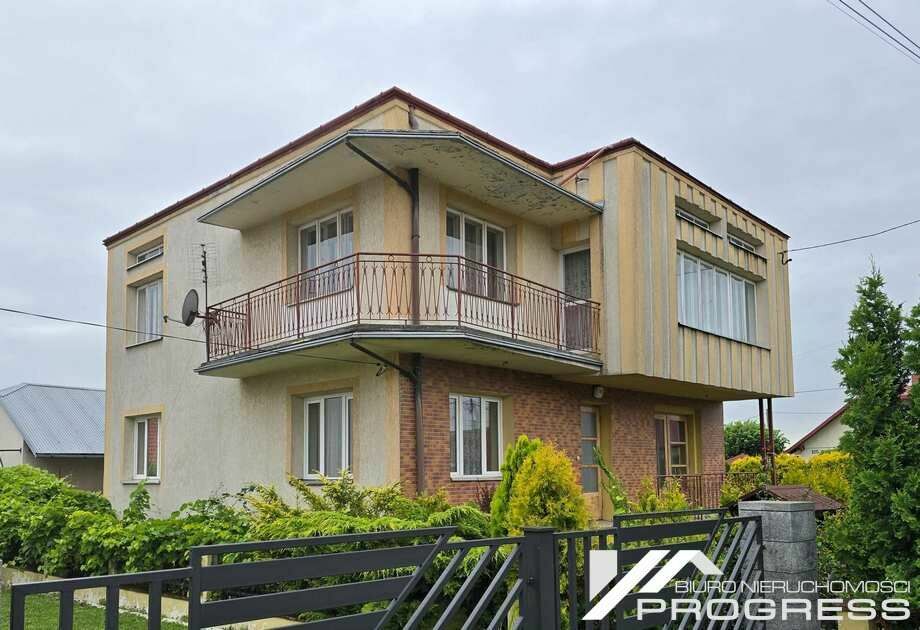 Oferujemy do sprzedaży dom jednorodzinny położony w bliskiej odległości od granic Krosna – administracyjnie w miejscowości Dobieszyn.Budynek mieszkalny o powierzchni użytkowej 164 m², całkowitej przeszło 220 m², wybudowany w końcu lat 70., murowany z pustaka i cegły, ściany i strop piętra ocieplone styropianem 8cm, kryty blachą trapezową, okna PVC i drewniane, na podłogach parkiet, panele i płytki, ogrzewanie na gaz oraz drewno lub węgiel. Dom w dobrym stanie tchnicznym, możliwy do użytkowania praktycznie od zaraz.